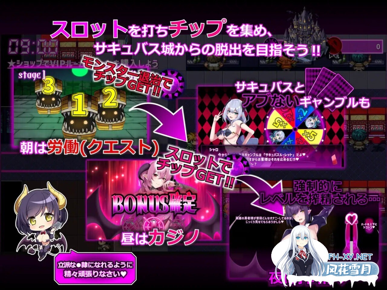 介绍 一位英雄沦为魅魔的奴隶, 十天内,淫秽标记将完全刻好。 这是一个老虎机游戏,你的目标是逃离魅魔城堡。 在 ...